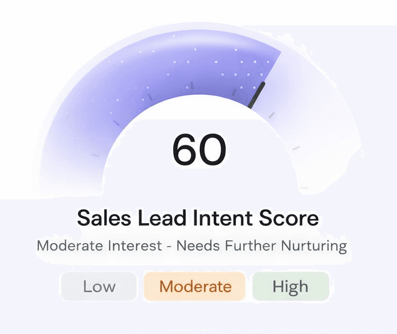 When a lead is sales-ready, the Handoff Agent compiles a complete lead brief — including conversation history, intent signals, and key insights and pushes it directly into your CRM before the first call. No gaps, no guesswork.
