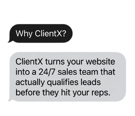ClientX works your website 24/7 - so your reps only talk to people who are ready to buy.